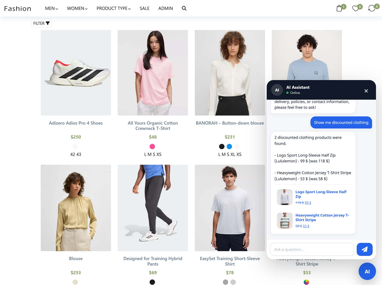 Turn your website into a smart AI assistant that understands questions, finds products, and answers with context.